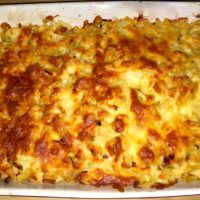 - Thoroughly combine the white sauce, onion mixture and cooked pasta/cauliflower mixture in a large bowl, then spoon it into the baking dish, cover in the shredded mozzarella and bake for 20 minutes or until the top is golden.
