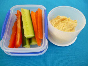 Veggie sticks and dip – experiment with different dips your kids like – hommus is a favourite.