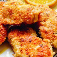 - Dip each floured chicken piece first in the egg mixture and then the breadcrumbs, then lay on a tray lined with baking paper.