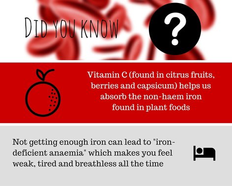 Iron is lost when you go to the toilet, sweat, bleed or menstruate, and it’s important to replace what is lost. Not having enough iron can cause iron-deficient anaemia, a condition resulting in tiredness, pale skin, weakness and breathlessness.