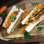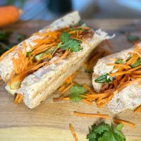 5Evenly distribute the meat among all rolls. Top with approximately ½ cup of the salad mixture, and garnish with coriander.