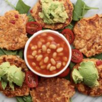Using approx. ¼ cup per fritter, spoon mixture onto pan and cook for approx. 3 minutes each side or until golden.