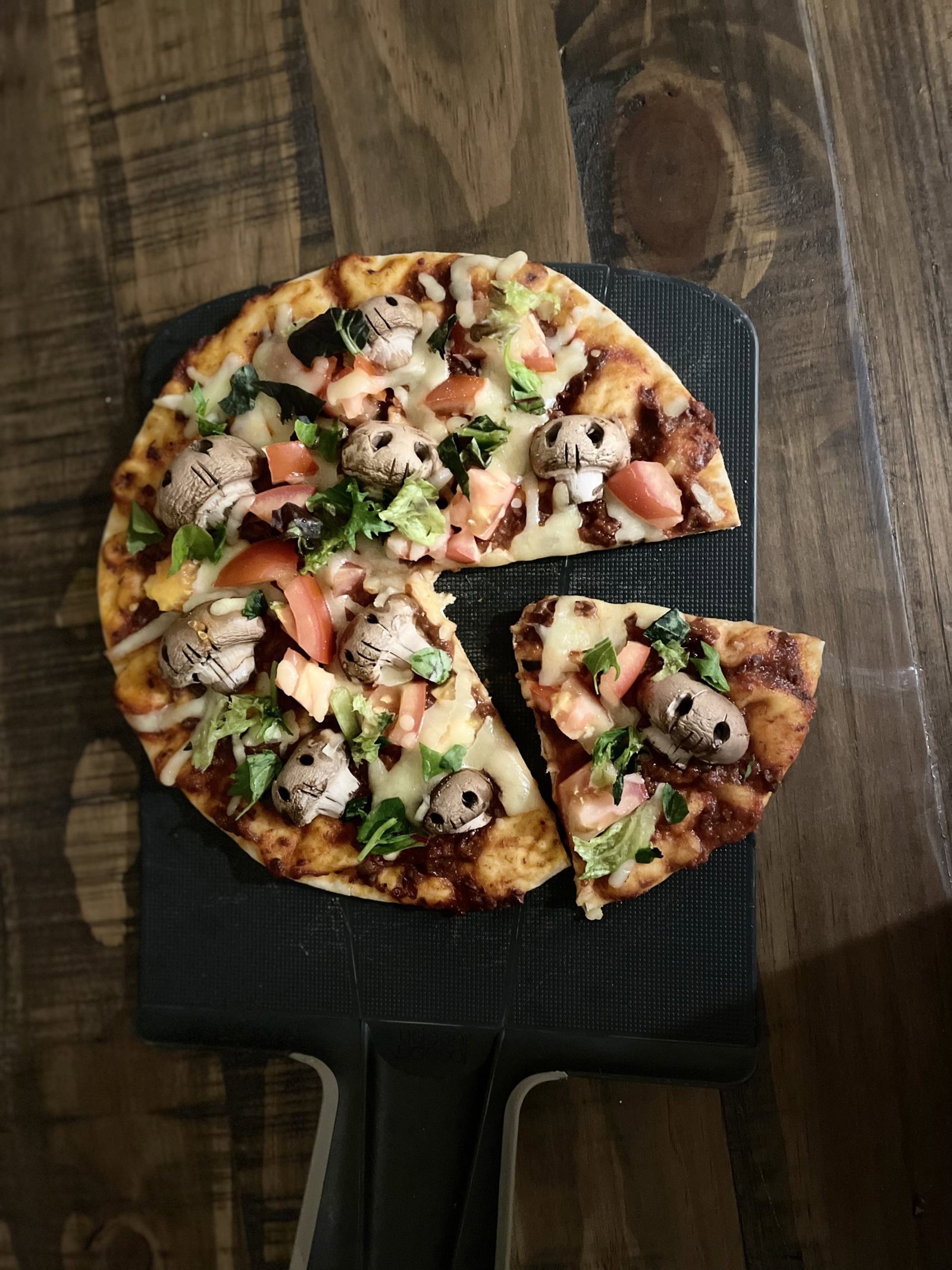 • Use a variety of different dark or red toppings to make this devious pizza extra mischievous!