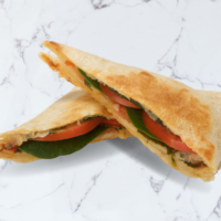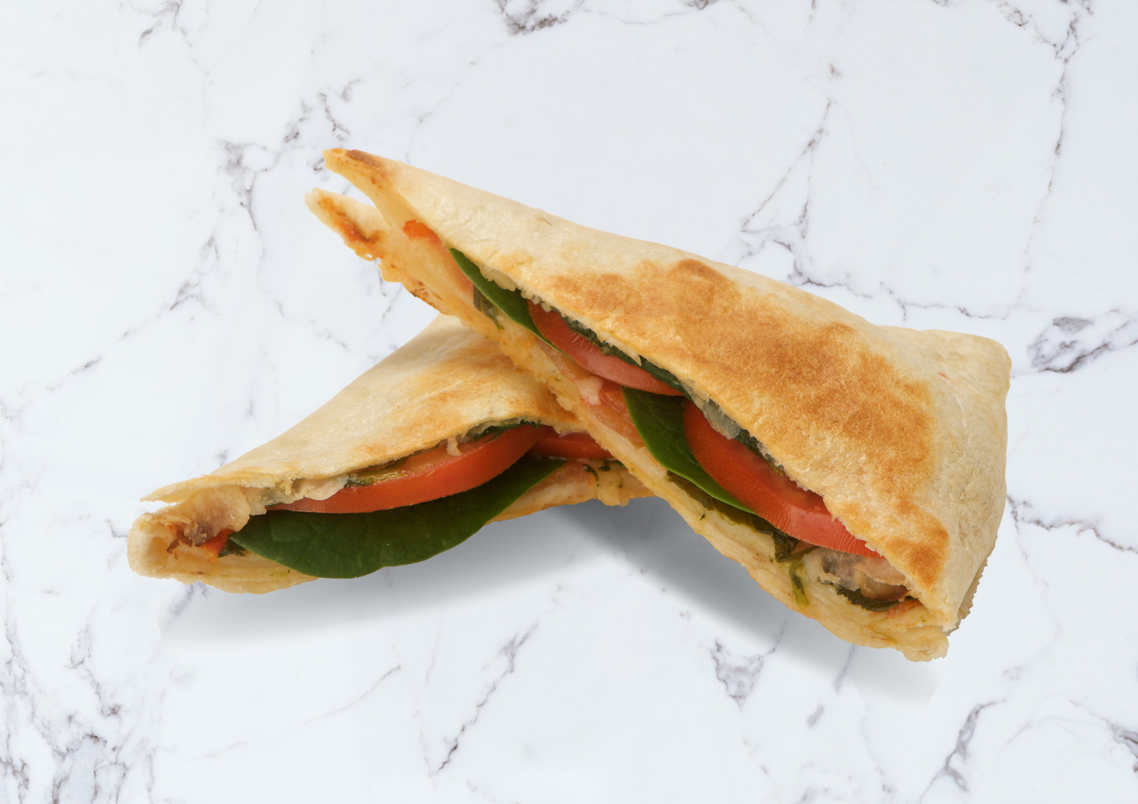 Lay out all the wraps and place a slice of tomato in the centre of each one, followed by half a slice of cheese and a small handful of spinach, keeping it all in the centre of the wrap.