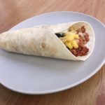 Place 1 tablespoon each of the beans, rice and corn on each tortilla.