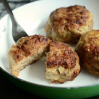 Spray a non-stick pan with oil and cook patties for 4-5 minutes on each side until brown and cooked through.