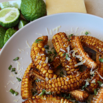 Using a pastry brush, brush the spiced oil onto the corn pieces and lay them on a baking tray lined with baking paper.