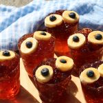 Once the jelly has set (best to make the afternoon or day prior), mix the jelly with a spoon so it becomes a chunky texture. Evenly distribute the chunky jelly into cups.