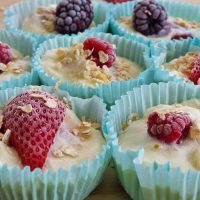 Dollop 1 tbsp of yoghurt onto the oats in each case.