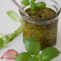 Traditionally pesto is made with nuts, but this makes it an unsuitable choice for most school canteens. In this recipe, adapted from one published in Healthy Food Guide, the nuts have been left out and replaced with seeds. You can also make the pesto with no seeds. However it will be a thinner mix. In that case, leave out the water and reduce the amount of oil. We have based the ingredients on one cup of basil to make it easier to adapt the quantities for your requirements.