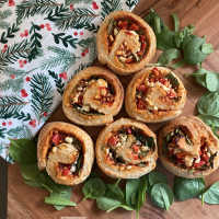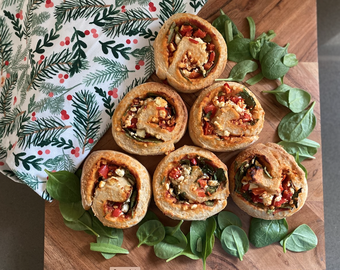 Place pinwheels on baking tray and bake for 15-20 minutes, or until golden.