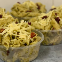 Traditionally pesto is made with nuts, but this makes it an unsuitable choice for most school canteens. In this recipe, adapted from one published in Healthy Food Guide, the nuts have been left out and replaced with seeds. You can also make the pesto with no seeds. However it will be a thinner mix. In that case, leave out the water and reduce the amount of oil. We have based the ingredients on one cup of basil to make it easier to adapt the quantities for your requirements.