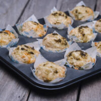 Pre-heat oven to 180°C. Spray a standard muffin tin with olive or canola oil spray.