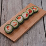 Cut each cucumber roll into sushi length slices (~2cm) or leave is as a sushi roll (~10cm).