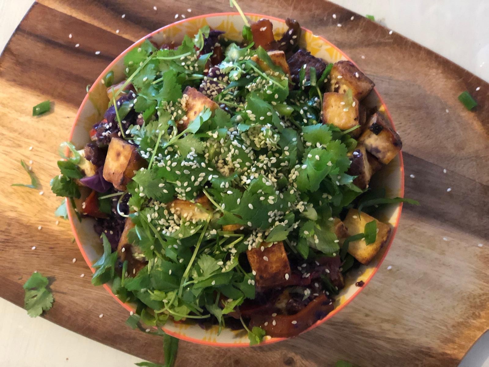 Add the tofu to the vegetable mix on medium heat. Add the soy sauce, honey, corn starch and stir through for 5 minutes.