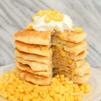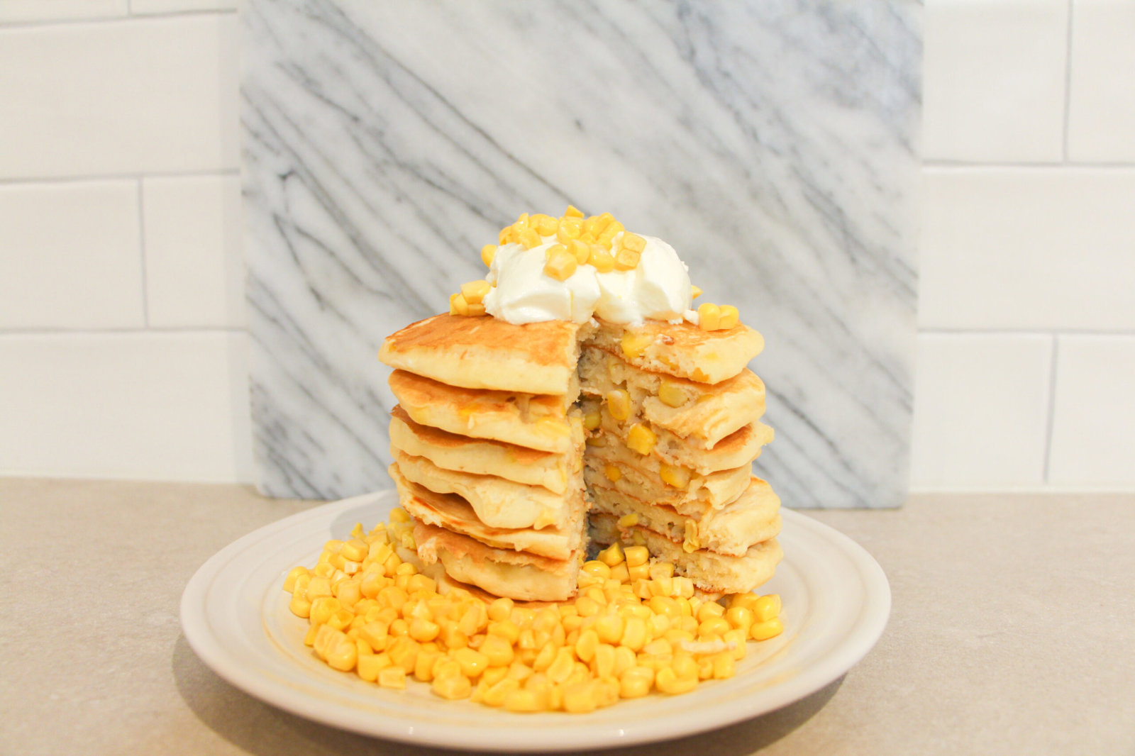 Sift flours into a bowl. Make a well in centre. Add milk mixture and whisk until just combined. Add corn kernels to mixture.