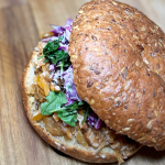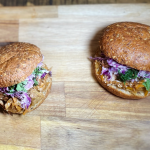 Check on the pork. If it is soft enough to pull apart with a fork it is ready. Pull the pork with two forks and stir through the BBQ sauce and apple cider vinegar.