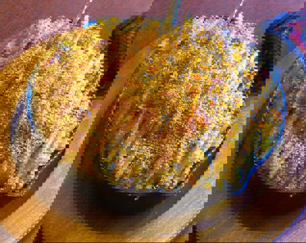 Combine the breadcrumbs and cheddar in a bowl and sprinkle over the pasta mixture.