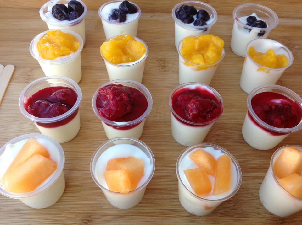 Evenly distribute yoghurt into 100mL cups (approx 50mL yoghurt).