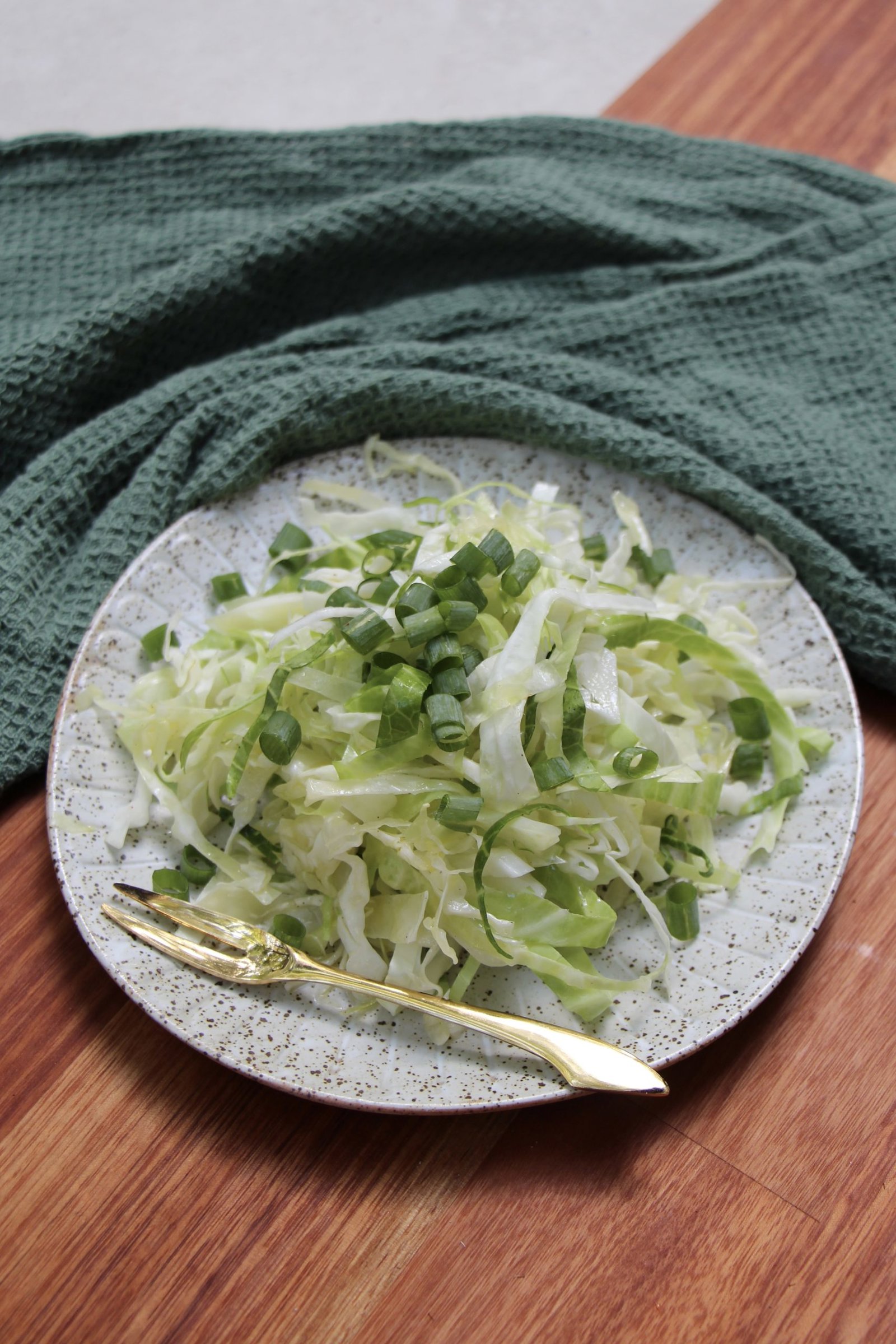 Cover the bowl with wrap and let the cabbage absorb the dressing for 10-15 minutes.