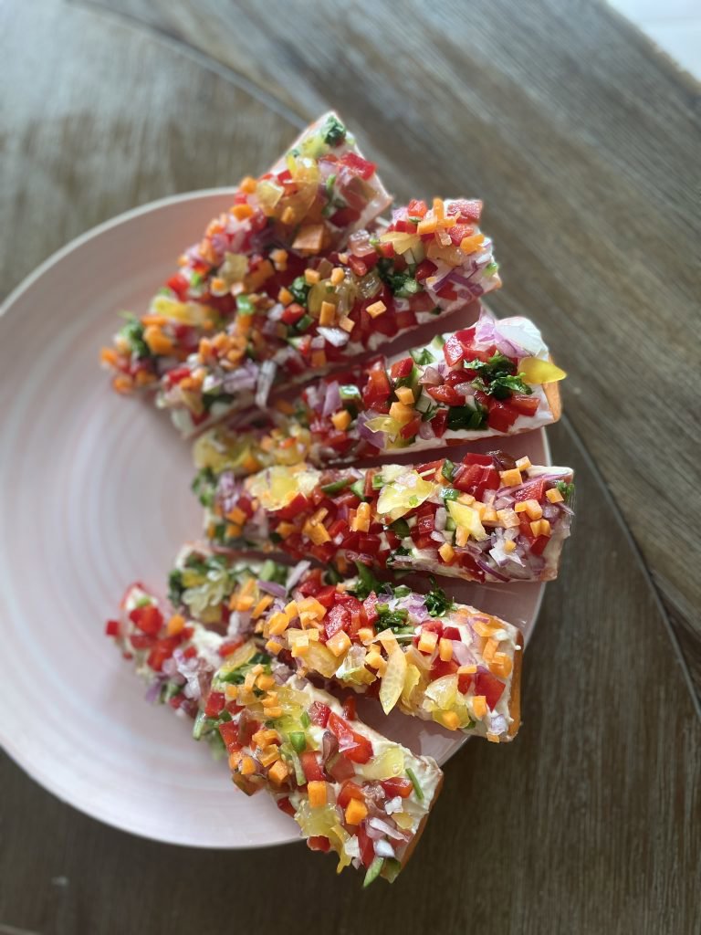 - Carrot fairies – slice the carrots lengthwise, spread with blended avocado/guacamole or hummus and sprinkle over finely chopped vegetables in a range of colours such as capsicum, cucumber and corn
