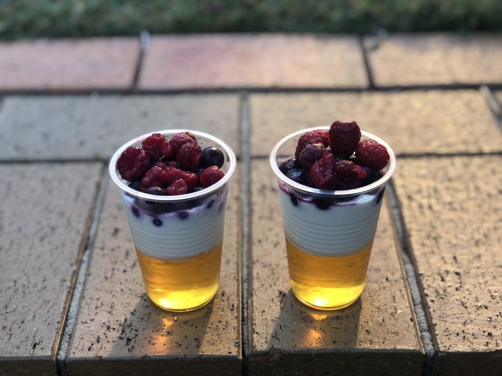 - Layered fruit, yoghurt and fruit jelly cups – make up jelly with 99% fruit juice and gelatine. Fill the bottom 1/3 of a serving cup with the jelly, add yoghurt to fill the next 1/3 and then fill to the top with chopped fruit