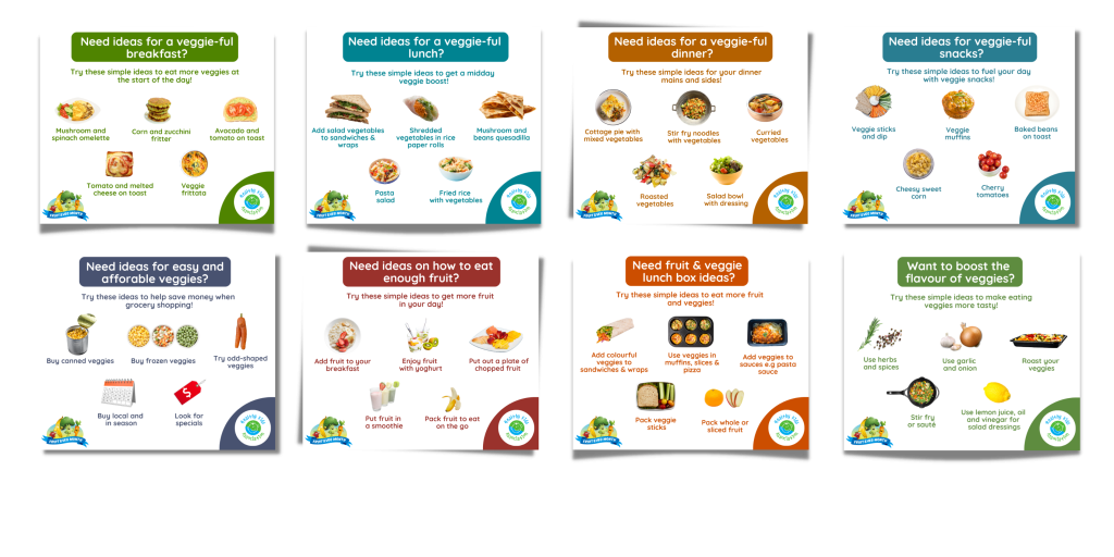 To really help bring the message home we have developed a set of engaging parent/carer information tiles. Use them in your communication channels (e.g. newsletter or school app). We have developed two tiles for each week of Fruit & Veg Month.