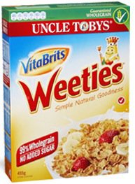 | Uncle Toby’s | Vita Brits Weeties | 30g | 460kJ | 1533 | 1.1 | 400 | 12 | 1.1 | 0.97 | 0.9 |