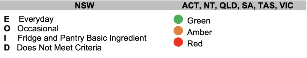 The below Healthy Kids Registered Products have been assessed against and classified according to the Healthy Kids Nutrient Criteria and each state/territory’s canteen guidelines and policies.