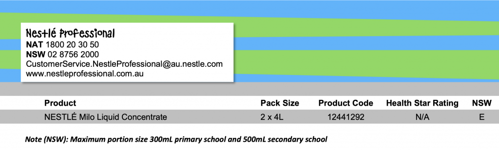 Note: Products that don’t require a particular Health Star Rating in order to be sold in NSW school canteens are listed as N/A. All HSRs listed on this page are consistent with the revised Health Star Rating Calculator, released by the NSW Government in November 2020.